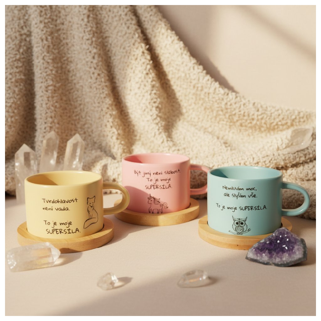 Hrnek se sovou z kolekce SUPERSÍLA oslavuje dar naslouchání a hlubokého vnímání světa.