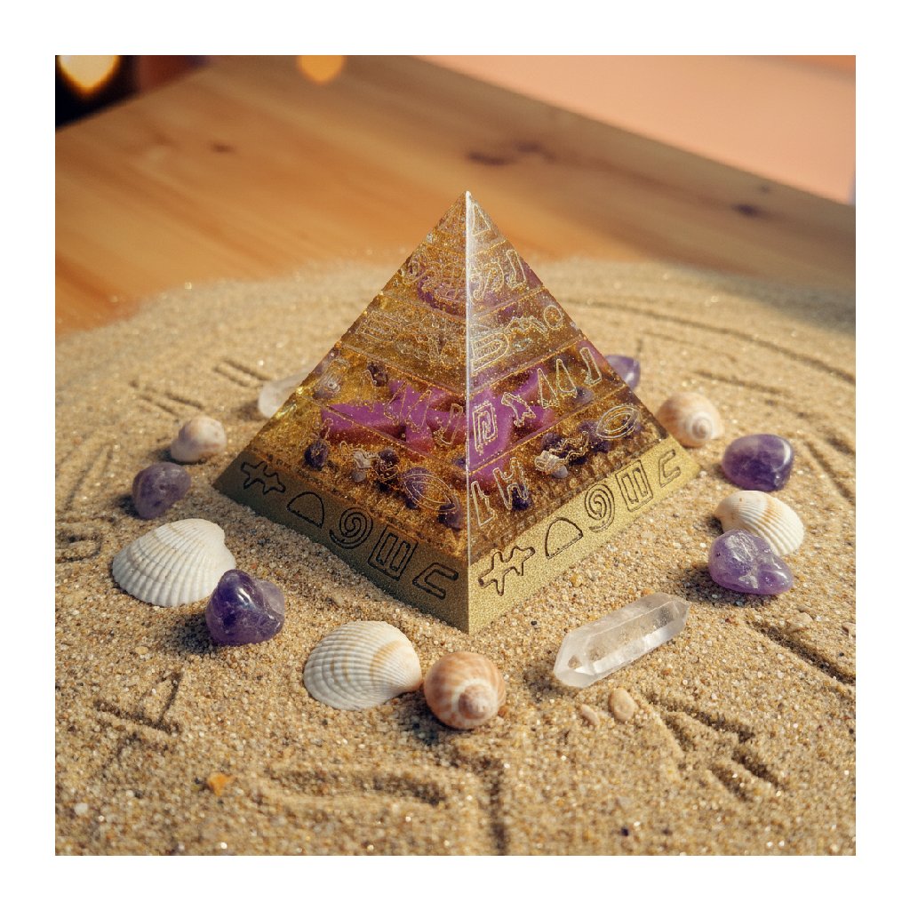 💜 Tato pyramida v sobě nese esenci dávných chrámů, kde se světlo snoubí s písečným tichem a moudrostí, která překračuje čas. Její zlatý lesk připomíná paprsky vycházejícího slunce nad pyramidami – symbol zrození, věčnosti a poznání.