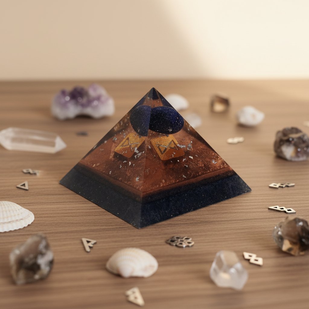 ❤️ Tato pyramida v sobě nese sílu zrození a obnovy. Jejím srdcem je sluneční kámen, který rozptyluje chmury, posiluje odvahu a probouzí v člověku vřelost i důvěru v život. Je kamenem radosti, optimismu a osobní síly – připomíná, že světlo vždy znovu vyjde, i po nejhlubší noci.