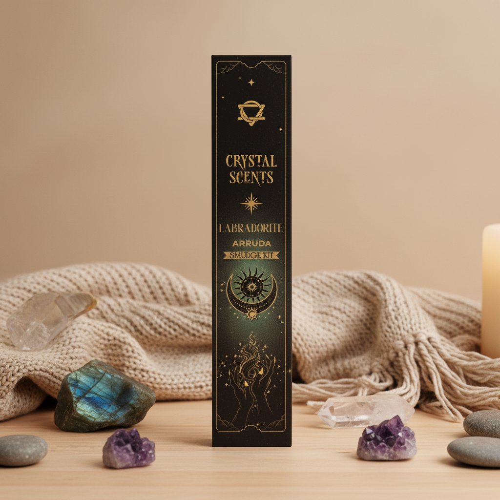 Vonné tyčinky a arrudou tradičně chrání před negativní energií a labradorit posiluje intuici i vnímavost. Ideální při nových začátcích, při setkání s cizí energií nebo kdykoliv potřebuješ cítit větší bezpečí.